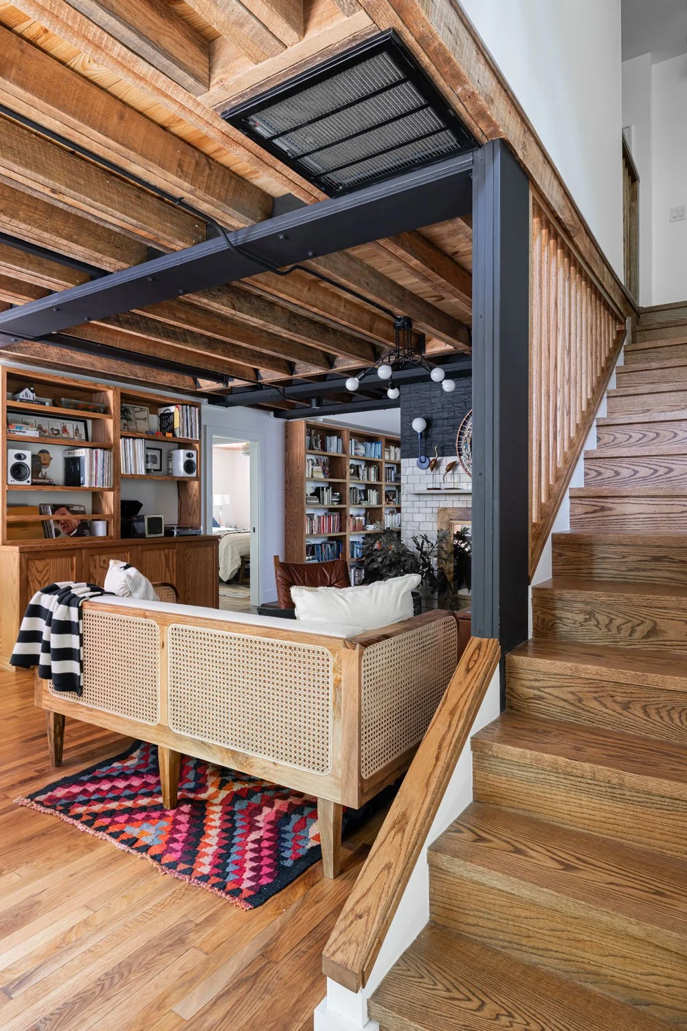 We began by revealing the beautiful old-growth floor joists, which were left exposed to complement the existing wood flooring. Many rooms were reconfigured to optimize storage and improve the flow of the living spaces.